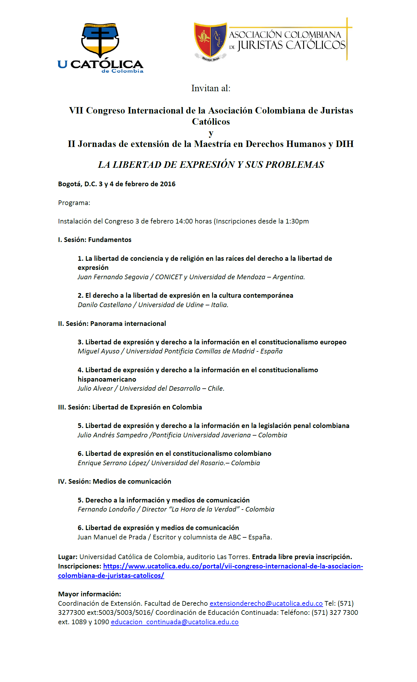 VII Congreso Internacional Asociación Colombiana de Juristas Católicos, 3 y 4 de febrero