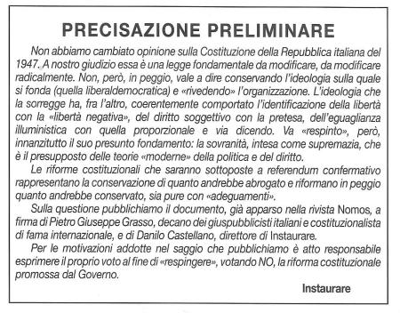 Referéndum Italia: Las razones del NO. Le ragioni del NO del tradizionalismo politico