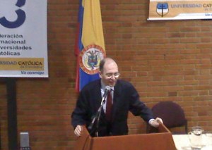 En la Universidad Católica de Colombia (Santafé de Bogotá) se han celebrado el VIII Congreso Internacional de la Asociación Colombiana de Juristas Católicos y III Jornadas de Extensión de la Maestría en Derechos Humanos y Derecho Internacional Humanitario de dicha Universidad. El tema de este año: «Terrorismo y guerra: problemas jurídicos y políticos». A la organización contribuyeron, además de la Unión Internacional de Juristas Católicos (Roma), el Grupo Sectorial en Ciencias Políticas de la Federación Internacional de Universidades Católicas (París) y el Consejo de Estudios Hispánicos Felipe II (Madrid).