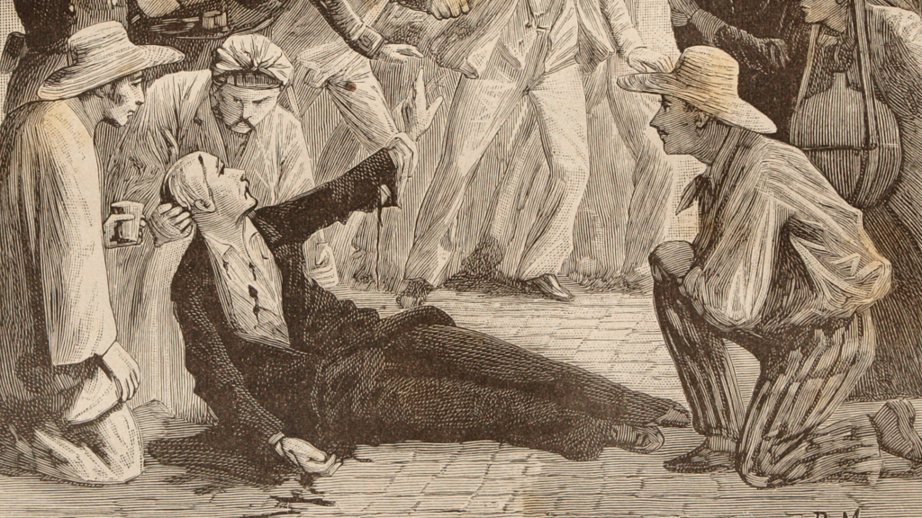 Asesinato de Gabriel García Moreno el 6 de agosto de 1875. Ilustración de P. Méjanel y F. Pannemaker