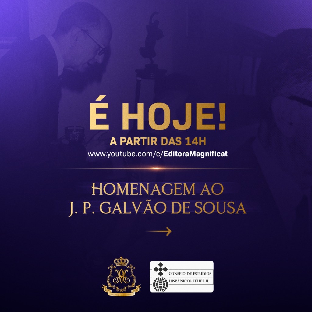 Hoy jueves 31 de mayo de 2022 la editorial brasileña Magnificat, en colaboración con el Consejo de Estudios Hispánicos Felipe II, organiza un homenaje a la memoria del Excmo. Sr. D. José Pedro Galvão de Sousa (1912-1992). Contará con la intervención de varios ilustres invitados, entre ellos las de Miguel Galvão de Sousa (hijo del homenajeado), Miguel Ayuso, Ricardo Dip, Vicente Amadei, Liliana Bittencourt, Victor Gama y Flávio Alencar. Tras las distintas ponencias habrá una mesa redonda.