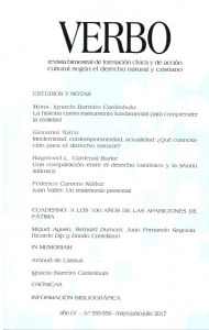 En nuestras manos el número 555-556 (mayo-junio-julio 2017) de Verbo, revista bimestral de formación cívica y de acción cultural según el derecho natural y cristiano. Es reconocida como la principal publicación en su género desde que en 1961 la fundaran Eugenio Vegas Latapie y Juan Vallet de Goytisolo; actualmente la dirige Miguel Ayuso Torres.
