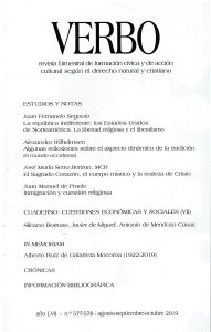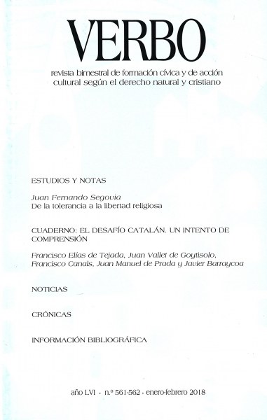 Antes del cuaderno, en la sección de «Estudios y notas», tenemos dos escritos. El primero, que abre la sección, lo hemos tomado del número extraordinario dedicado al centenario del nacimiento de Alexander Solzhenitsyn, el pasado mes de diciembre, por el quincenal francés L’Homme Nouveau. Lo firma su director y nuestro colaborador Philippe Maxence, a quien agradecemos la autorización para traducirlo y darlo a las prensas en castellano. De Solzhenitsyn Verbo publicó en el número 168, en el año 1978, su famoso discurso en la Universidad de Harvard de 8 de junio del mismo año. Traducido del ruso directamente por nuestro colaborador el profesor Vladimiro Lamsforff-Galagane, lo dimos en primicia en lengua castellana. Los lectores veteranos lo recordaran seguramente. Así como su denuncia del liberalismo «occidental» en un momento en que muchos (desde luego no nosotros) esperaban de él sólo la condena del comunismo. El segundo es mucho más de lo que parece. Pues no es sólo el comentario de un libro apreciable de un autor apreciado. Es la refutación de un error, en el que incurre el libro en cuestión, pero que se halla muy difundido en ciertos ambientes católicos y particularmente en los de quienes meritoriamente quieren ponerse al abrigo de la Tradición católica. El tema es, en todo caso, central para el empeño de la formación cívica y la acción cultural según el derecho natural y cristiano. El profesor Segovia, que es quien nos lo entrega, vuelve una vez más a demostrar su rigor dentro del respeto al autor del libro examinado. Y su sensibilidad para detectar la progenie ajena al tomismo de tesis que se harían pasar como suyas.