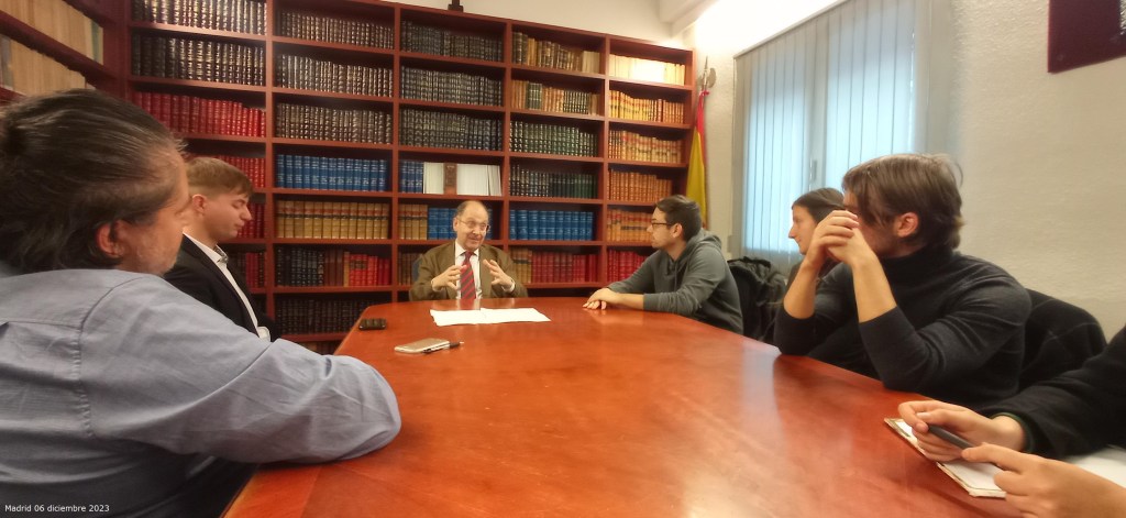 Una de las sesiones ha sido el miércoles 6 de diciembre con el profesor Miguel Ayuso, presidente del Consejo de Estudios Hispánicos Felipe II. Durante dos horas han conversado —entre otros temas— sobre la historia contemporánea de España y el papel del carlismo, el significado equívoco del conservadurismo, la génesis de la vigente Constitución española, la naturaleza posestatal de la integración europea, el significado del americanismo, etc.