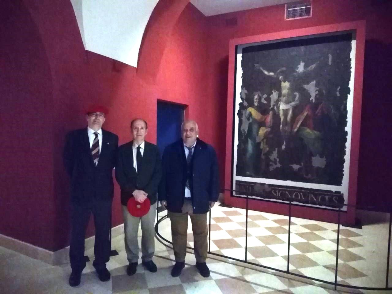 Ante el Estandarte de Lepanto, el Dr. Gianandrea de Antonellis, el Prof. Miguel Ayuso y el Dr. Francesco Maurizio Di Giovine