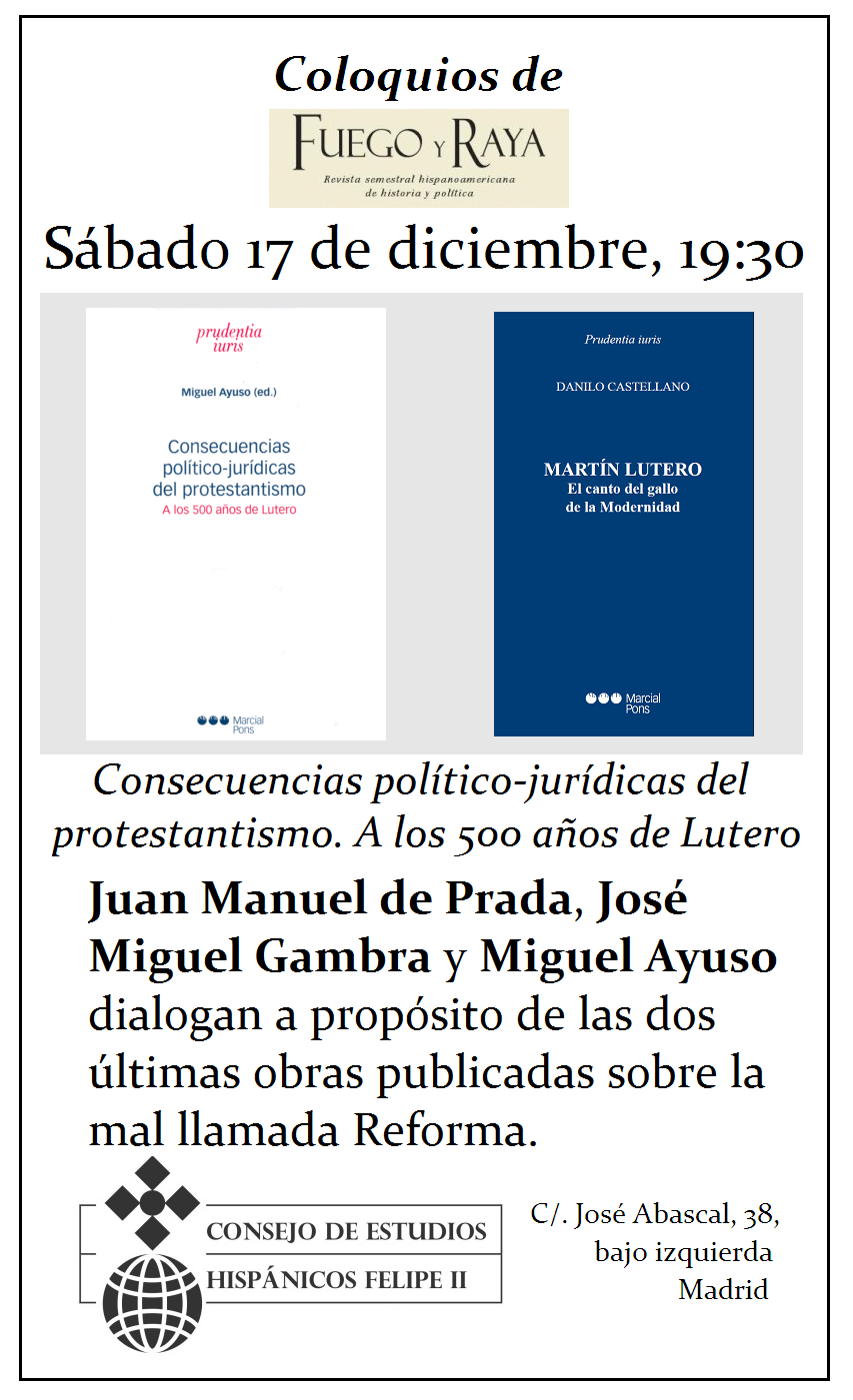 También de una serie importante de actividades anuales. Para empezar, de las Jornadas de la Asociación Colombiana de Juristas Católicos, como siempre en febrero, en la Universidad Católica de Colombia, dedicadas a los ochocientos años de la Carta Magna, seguidas de las «Conversaciones de Paipa», preparatorias de la (previsiblemente desastrosa) conmemoración de los quinientos años de la herejía y el cisma luteranos que tendrán lugar aproximándose 2017. En segundo lugar de la Reunión de Amigos de la Ciudad Católica, en abril, sobre monarquía y democracia, precedida del Seminario Juan Vallet de Goytisolo de la Real Academia de Jurisprudencia y Legislación, esta vez sobre el libro de Juan Fernando Segovia sobre Locke y el derecho natural. A continuación de las Jornadas Napolitanas de Derecho Natural, en mayo, sobre el fundamento del derecho natural. Y seguidamente, entre junio y julio, del campus del Roman Forum de nuestro amigo John Rao en el Lago de Garda.