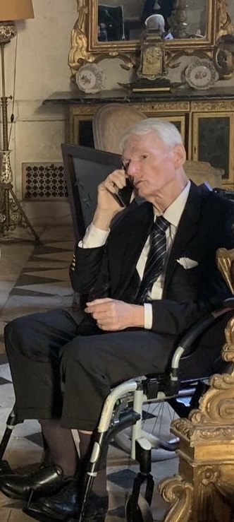 Don Sixto Enrique hace dos semanas, en una salida de la clínica para una recepción, habla por teléfono