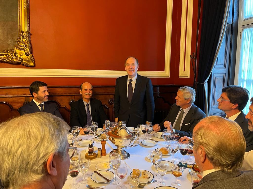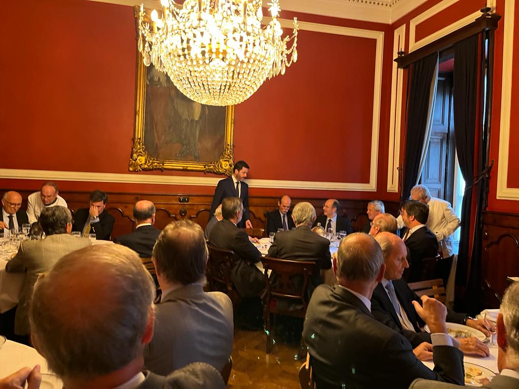 El Profesor Miguel Ayuso, presidente del Consejo de Estudios Hispánicos Felipe II, invitado por el prestigioso Turf Club de Lisboa, ha intervenido en el almuerzo-coloquio «Liberalismo y absolutismo en España y Portugal durante el siglo XIX». El almuerzo fue presidido por el Conde de Cartaxo, actual presidente del club y de familia miguelista, quien saludó a los asistentes, que llenaban el Salón de los Reyes. A continuación, Miguel Olazabal Almada, descendiente del Conde de Arbeláiz —don Tirso de Olazábal, estrecho colaborador de Don Carlos VII— y por parte de padre también de familia miguelista, presentó al Profesor Ayuso, quien en su intervención observó que el título indicado escondía un equívoco y le permitía afrontar un problema. Pues liberalismo y absolutismo, lejos de enfrentarse, vinieron a converger en realidad, oponiéndoseles en cambio el tradicionalismo, encarnado en el miguelismo y el carlismo. Destacó también, como diferencia, el arraigo y pervivencia de éste frente al más temprano decaimiento del primero. Seguidamente, Francisco Mendía presentó al segundo orador, el historiador Lourenço Pereira Coutinho, quien relató significativos acontecimientos de la historia portuguesa del siglo XIX. Un animado coloquio prosiguió hasta bien entrada la tarde. Entre los asistentes destacaba la presencia de Francisco y Miguel Braganza van Uden, primos de S.A.R. Don Sixto Enrique de Borbón, cercanos en el afecto y las convicciones. Con el primero compartió particularmente aventuras en la guerra del Ultramar durante los años setenta. También se encontraban, entre otras muchas personalidades, los marqueses de Mendía y de Mesquitela.