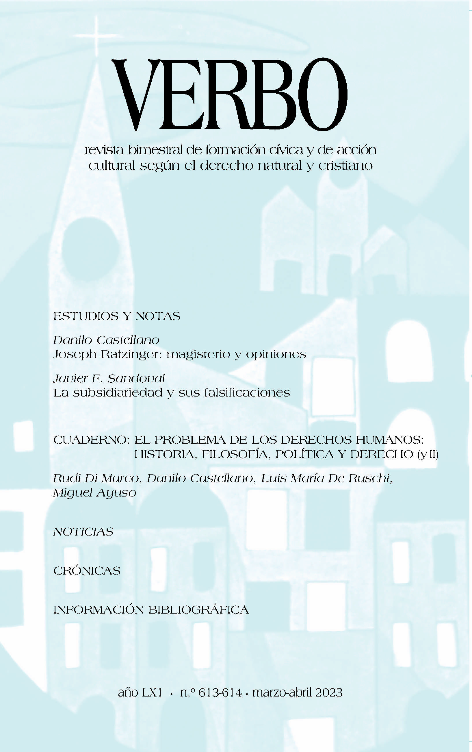Se está distribuyendo estos días el número 617-618, agosto-octubre, cuarto número de la serie de 2023 de Verbo, revista bimestral de formación cívica y de acción cultural según el derecho natural y cristiano.